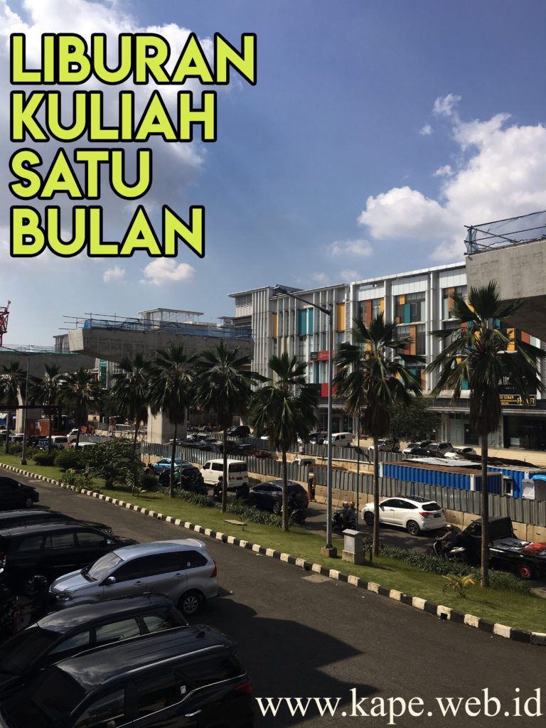 Setelah mengambil marksheet yang isinya adalah kumpulan nilai dari semua mata kuliah beserta dengan IP, waktu liburan tiba. Akhirnya setelah kuliah selama kurang lebih 6 bulan, libur juga. Liburan semester ganjil di kampus gue lumayan lama, satu bulan. Dari akhir Januari sampai awal Maret. Gue pun bingung mau ngapain selama satu bulan.