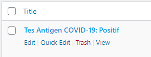 Ketiga, pindahkan kursor ke salah satu judul postingan. JANGAN DIKLIK! Tapi, arahkan saja kursor ke judul. Nantinya, di bawah judul akan muncul beberapa menu pilihan. Perhatikan gambar berikut.