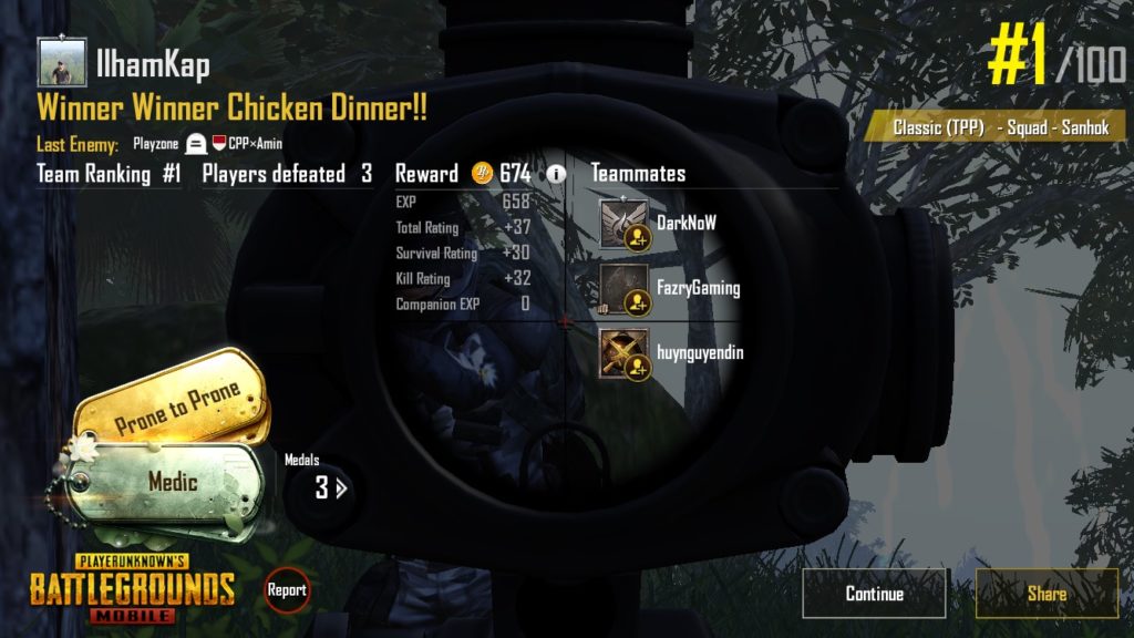Saya pun mengunduh game online bernama PUBG. Tidak berbeda jauh dengan game online Point Blank yang saya mainkan dulu ketika masih kecil, sama-sama tentang perang. Eh, ternyata seru juga. Akhirnya selama kurang lebih 3 hari, saya menghabiskan waktu untuk bermain game tersebut. Bahkan, sangking excited-nya, setiap setelah bermain dan menang selalu saya bagikan di media sosial.